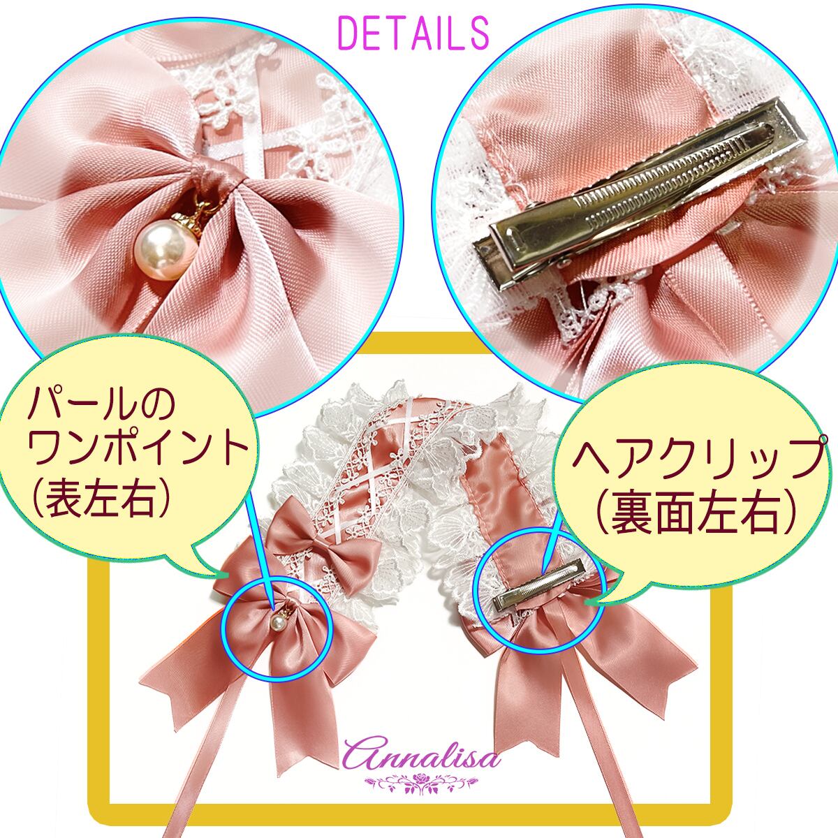 裏面には クリップがついており、お好きな位置につけることが出来ます。