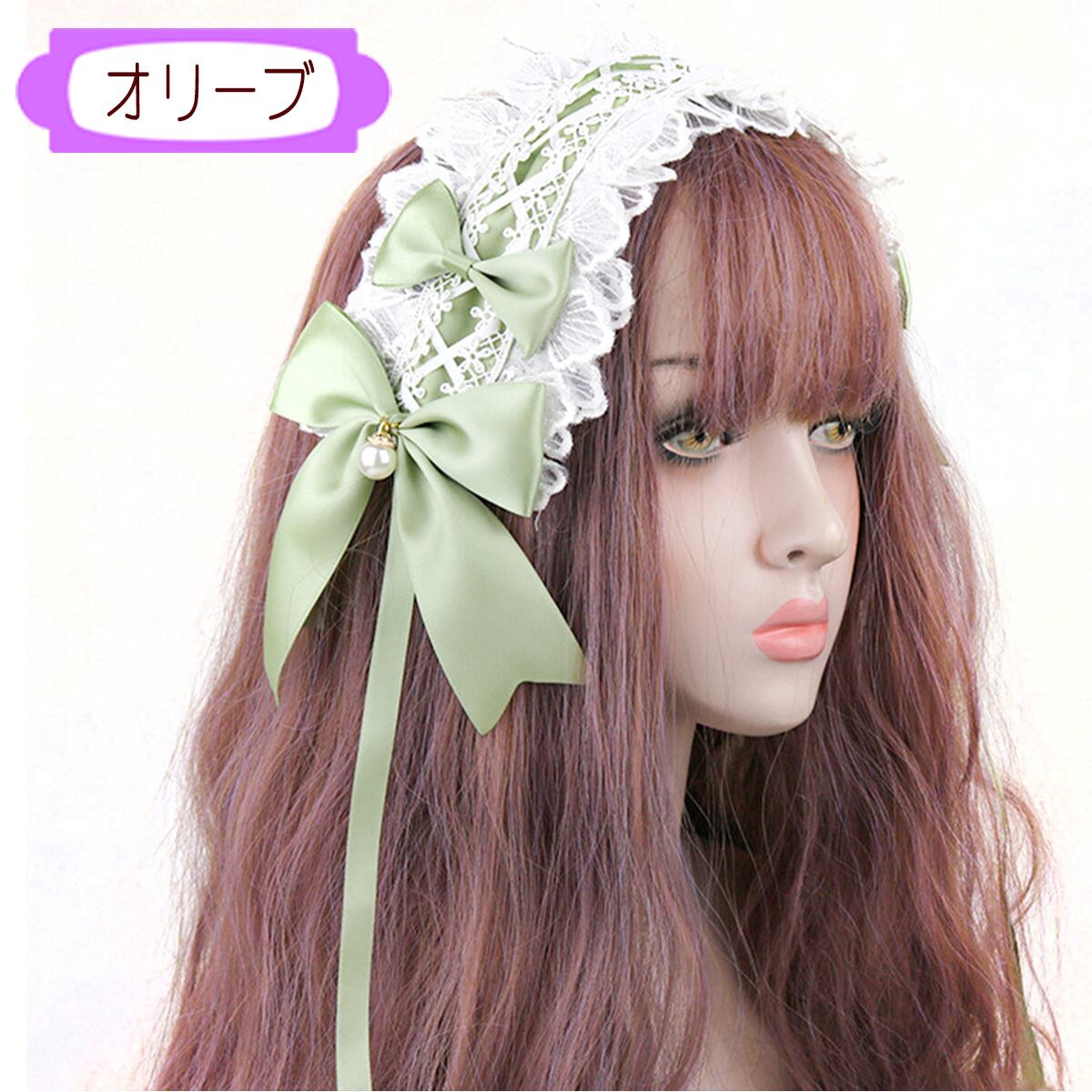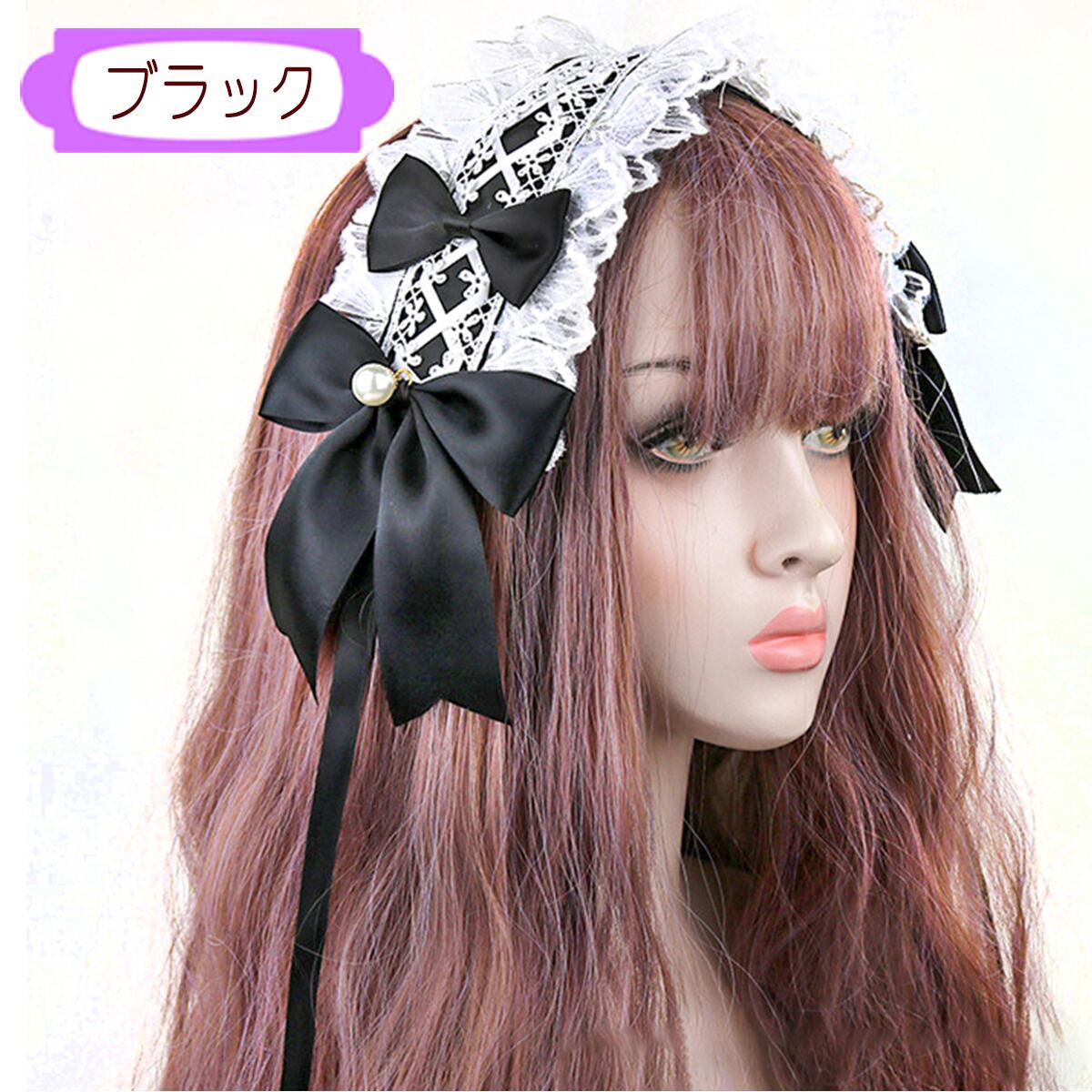 ヘッドドレス カチューシャ コスプレ ゴスロリ リボン ヘアアクセ ハロウィン ロリータ メイド サックス ボルドー 黒 ピンク lolita ロリィタ